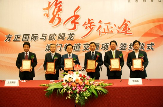 方正集團總裁張兆東在簽約儀式上表示:“我相信在歐姆龍和方正國際雙方的共同努力下,澳門(mén)軌道交通項目將會(huì )順利、高效地完成,中國的智能交通領(lǐng)域也將得到進(jìn)一步的推動(dòng)和發(fā)展。方正集團將一如既往地支持方正國際與歐姆龍的合作?!?br> 軟件及行業(yè)解決方案是方正信產(chǎn)集團四大業(yè)務(wù)板塊之一,作為方正信產(chǎn)集團的重要一份子,方正國際在軌道交通、金融和醫療信息化、地理信息系統等領(lǐng)域進(jìn)行了深入的技術(shù)研發(fā),形成了競爭優(yōu)勢,并與眾多國際公司展開(kāi)合作。方正國際總裁管祥紅表示:“世界各國經(jīng)濟的發(fā)展已經(jīng)證明軌道交通是解決城市交通擁堵的最有效手段。作為今后的重要發(fā)展方向之一,方正國際將致力于軌道交通的長(cháng)期投入和建設,并為城市軌道交通建設做出自己的貢獻”。方正國際在用實(shí)際行動(dòng)改變人們的出行方式,讓城市交通變得更安全、更高效、更環(huán)保,同時(shí)也助力方正信產(chǎn)集團發(fā)展成為一家全球信息技術(shù)、產(chǎn)品及服務(wù)的綜合供應商。